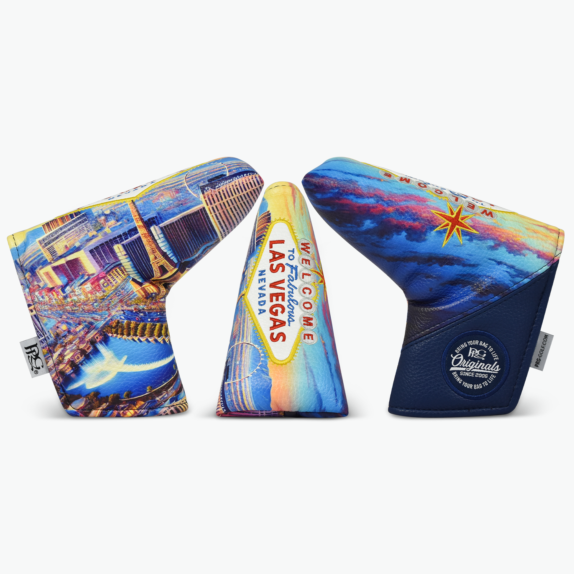 Introducing the all-new Vegas Strip collection. From late-night jackpots to sunrise tee times, this duo captures both sides of Sin City. Setting the scene with a printed sunset skyline and the city’s iconic Welcome sign, this headcover and accessories collection is perfect for the Vegas golfer!